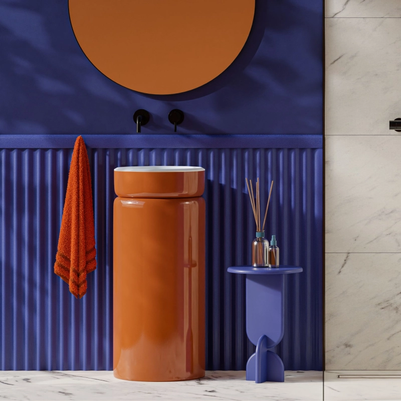 Umywalka wolnostojąca okrągła pomarańczowa RONA Nude Glow 85 x 40 cm