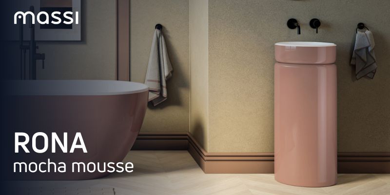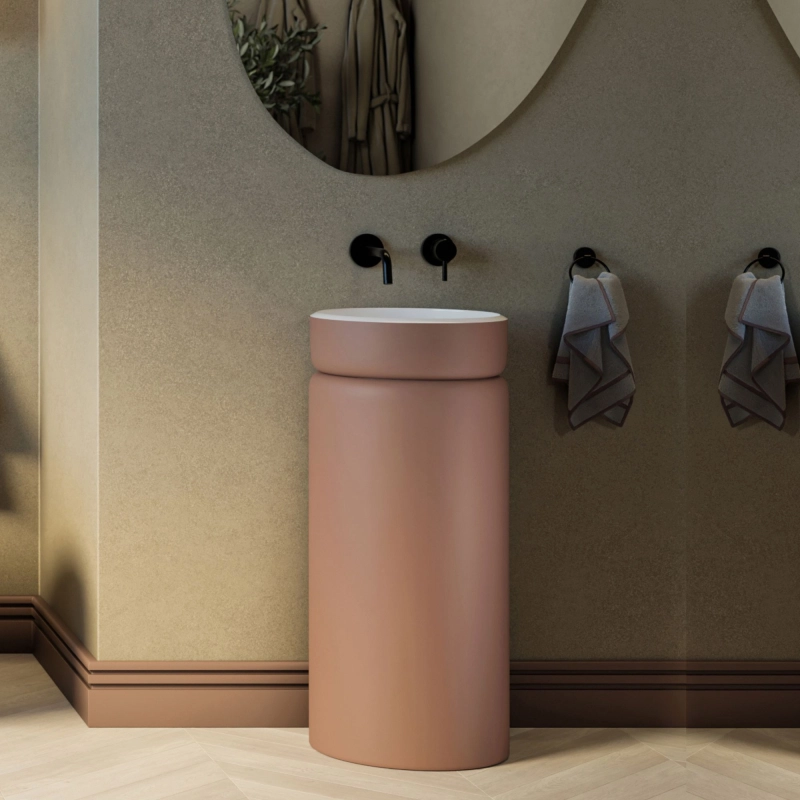 Umywalka z konglomeratu wolnostojąca okrągła 85 x 40 cm RONA Mocha Mousse matt / połysk bez przelewu
