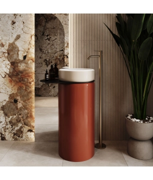 Umywalka z konglomeratu wolnostojąca okrągła z półką szklaną 85 x 40 cm RONA bez przelewu | Różne kolory półki