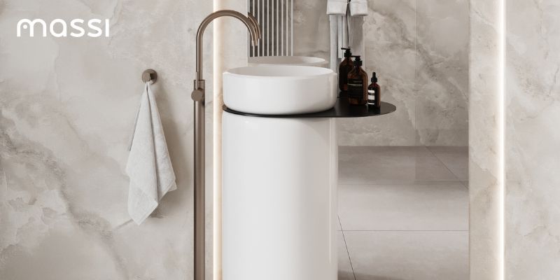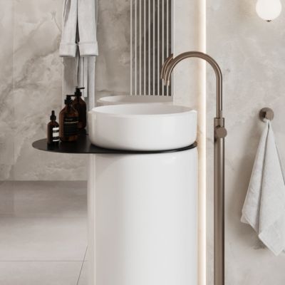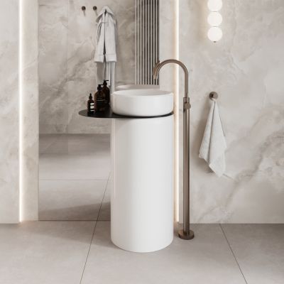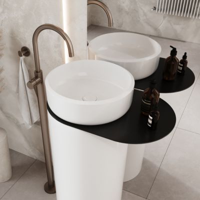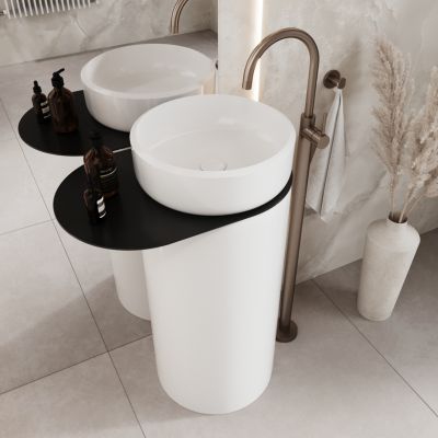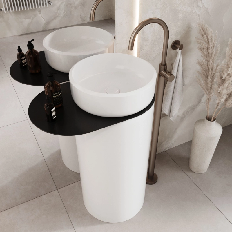 Umywalka z konglomeratu wolnostojąca okrągła 85 x 40 cm z półką metalową RONA bez przelewu