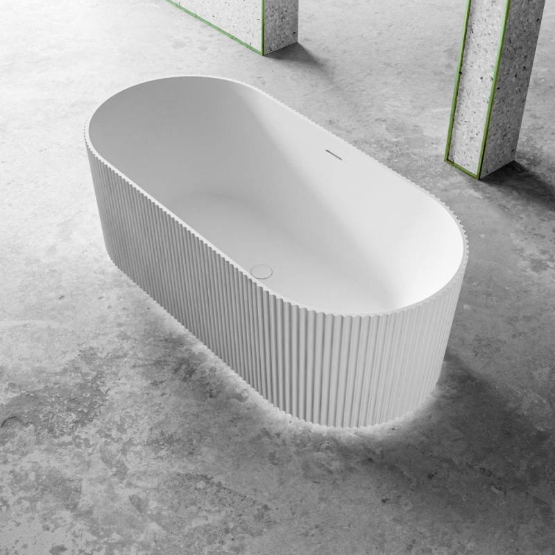 Wanna wolnostojąca VELIA to zupełna nowość na polskim rynku. Elegancki owalny kształt został wzbogacony designerską, ryflowaną fakturą, dzięki czemu wanna VELIA stanie się wyjątkową ozdobą każdej łazienki. Podświetlenie LED w dolnej części dodatkowo podkreśla wyjątkowy charakter tego modelu oraz nadaje nastrojowy klimat.