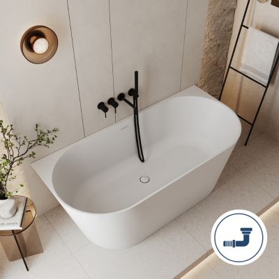 Wanna wolnostojąca przyścienna WALL 160 cm w kolorze białym matowym – luksus i komfort nawet w niewielkich przestrzeniach.