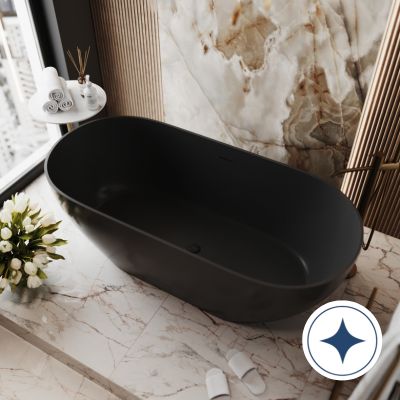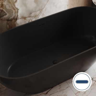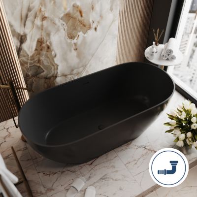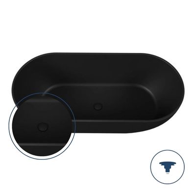 Wanna wolnostojąca owalna czarna matowa z konglomeratu 160 x 75 cm RONA Black matt przelew typu SLIM cienki rant