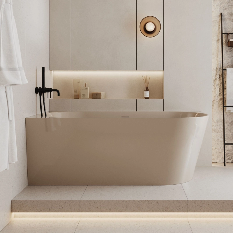 Wanna WALL, jest zabudowana ściankami z każdej strony, stanowi eleganckie i spójne rozwiązanie, które harmonijnie integruje się z każdym stylem łazienki.