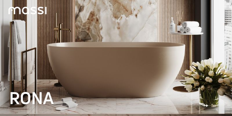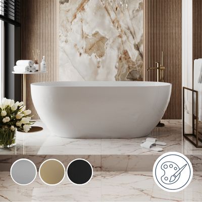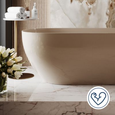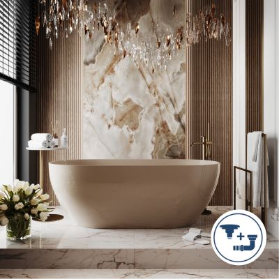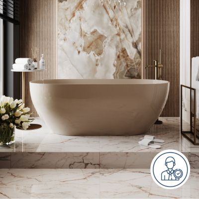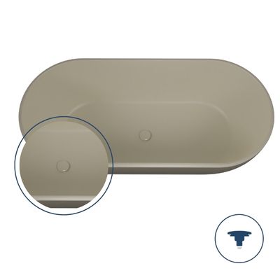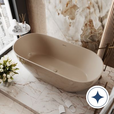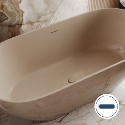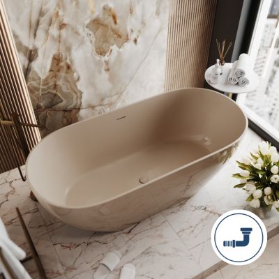 Wanna wolnostojąca owalna z konglomeratu 160 x 75 cm RONA Beige mat / połysk przelew typu SLIM cienki rant