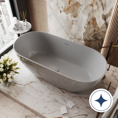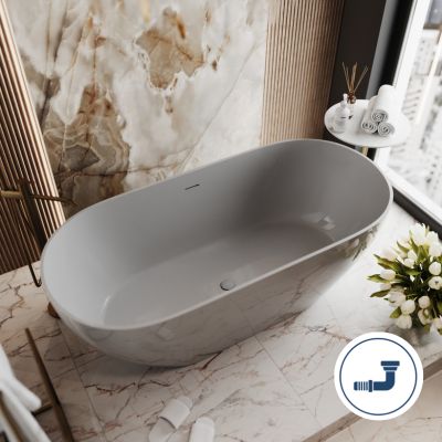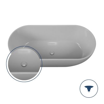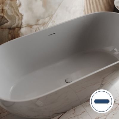 Wanna wolnostojąca owalna z konglomeratu 160 x 75 cm RONA Grey mat / połysk przelew typu SLIM cienki rant