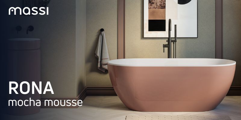Wanna wolnostojąca owalna z konglomeratu 160 x 75 cm RONA Mocha Mouse mat / połysk przelew typu SLIM cienki rant