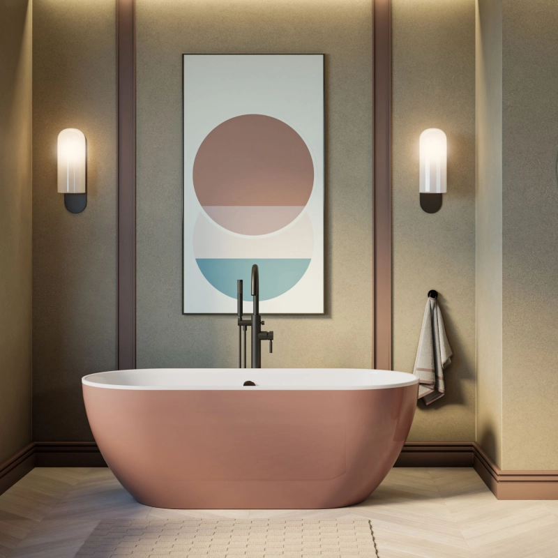 Wanna wolnostojąca owalna z konglomeratu 160 x 75 cm RONA Mocha Mouse mat / połysk przelew typu SLIM cienki rant