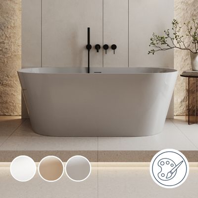 Odkryj wannę dostępną w czterech atrakcyjnych wariantach kolorystycznych: białym, beżowym oraz szarym, dostosowaną do indywidcualnych preferencji i stylu Twojej łazienki. Każdy kolor jest dostępny zarówno w wykończeniu matowym, dla subtelnej elegancji, jak i w połysku, dodającym przestrzeni dodatkowego blasku. Ta różnorodność wyboru pozwala na idealne dopasowanie wanny do estetyki i charakteru Twojego wnętrza, bez względu na to, czy preferujesz nowoczesność, minimalizm czy klasyczną elegancję.