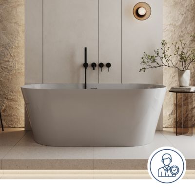 - Uniwersalny design: Ponadczasowy styl wanny WALL pasuje do wielu aranżacji, zarówno nowoczesnych, jak i tradycyjnych. Matowy, biały kolor dodaje jej elegancji i czystości. Możesz połączyć ją zarówno z baterią podtynkową, jak i designerską – stojącą, tworząc spójną estetykę.